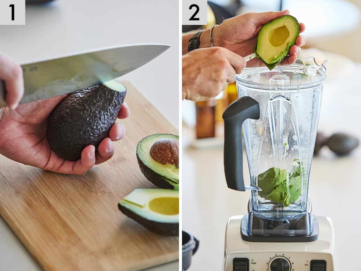 နာနတ်သီး၊ ထောပတ်သီးနဲ့ သရက်သီးတို့ကို လှီးပြီး ပြင်ဆင်ထားပါ။ Blender ထဲမှာ နာနတ်သီး၊ ထောပတ်သီး၊ သရက်သီး၊ ဟင်းနုနွယ်ရွက်၊ အုန်းရေ၊ ပျားရည်၊ သံပုရာရည်၊ အုန်းရေနဲ့ ရေခဲတို့ကို ထည့်ပါ။