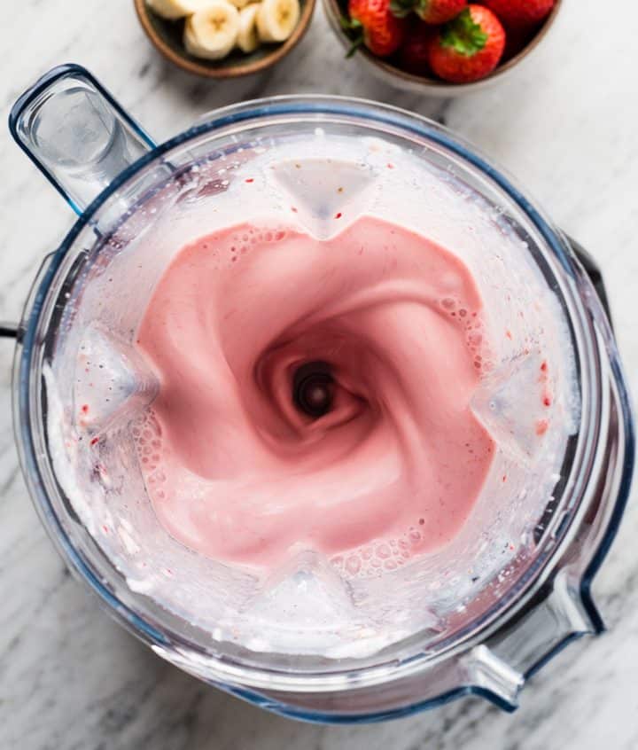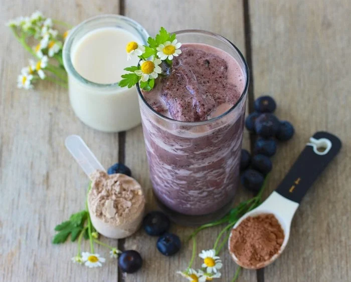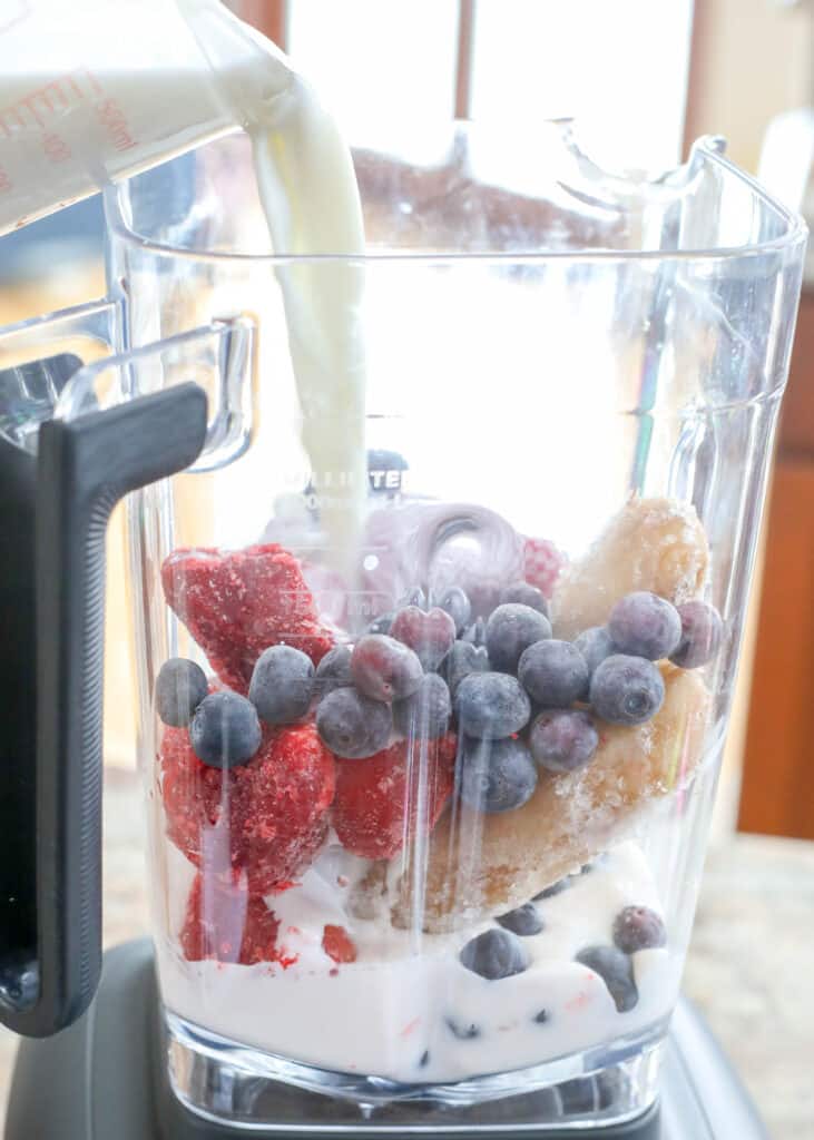 - စတော်ဘယ်ရီ၊ ဘလူးဘယ်ရီ၊ ငှက်ပျောသီး၊ သီဟိုဠ်စေ့နို့၊ သီဟိုဠ်စေ့ထောပတ်နဲ့ Hemp Seeds တို့ကို Blender နဲ့ ရောမွှေပေးပါ။