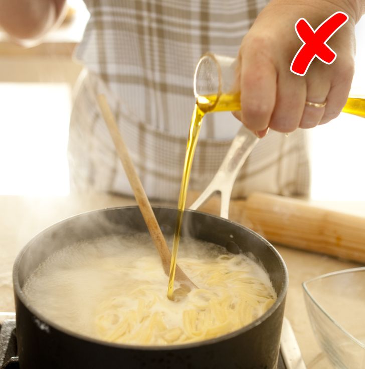 Pasta စားဖို့ ခေါက်ဆွဲပြုတ်တဲ့အခါ တချို့လူတွေက ရေထဲကိုဆီထည့်ပြီး ပြုတ်တတ်ကြပါတယ်။ ဆီထည့်တာက ရေဆူပြီးလျှံမကျစေဖို့နဲ့ ခေါက်ဆွဲတွေတစ်ခုနဲ့တစ်ခု မကပ်စေဖို့ အတွက်ဆို မှန်ပေမယ့် ခေါက်ဆွဲကို sauce နဲ့ တွဲစားဖို့စီစဥ်ထားတယ်ဆိုရင်တော့ အဆင်မပြေတော့ပါဘူး။ ဘာလို့လဲဆိုတော့ sauce တွေ ခေါက်ဆွဲမှာကပ်ဖို့ ခက်ခဲစေလို့ပါ။