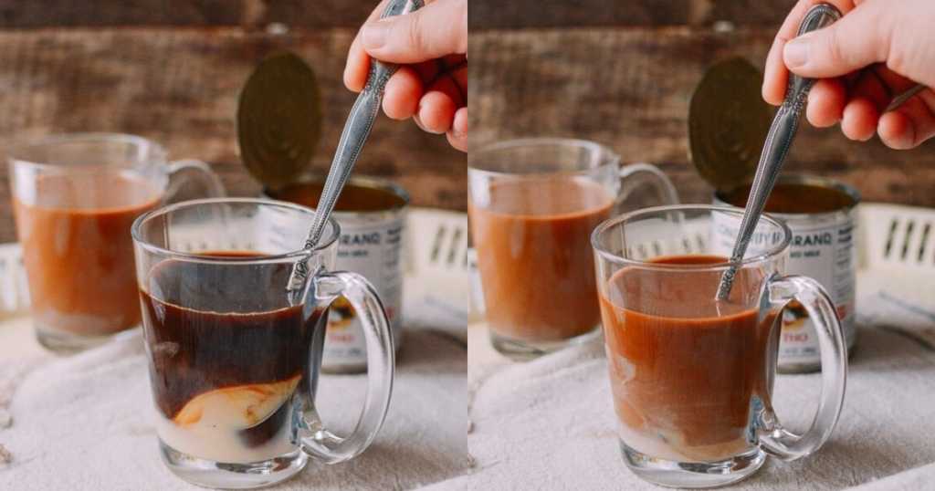 - နို့ဆီ စားပွဲတင်ဇွန်း ၁-၃ ဇွန်းကို ကော်ဖီခွက်ထဲ လောင်းထည့်လိုက်ပါ။ သင်ကြိုက်တဲ့အချိုပမာဏပေါ်မူတည်ပြီး နို့ဆီကိုထည့်ပေးပါ။