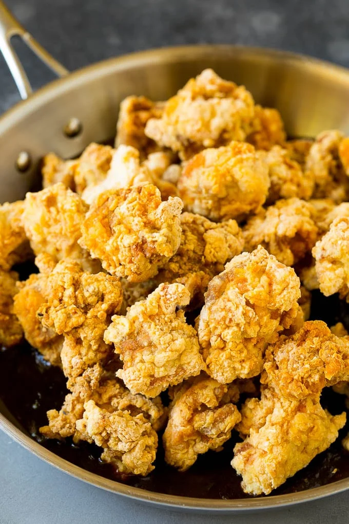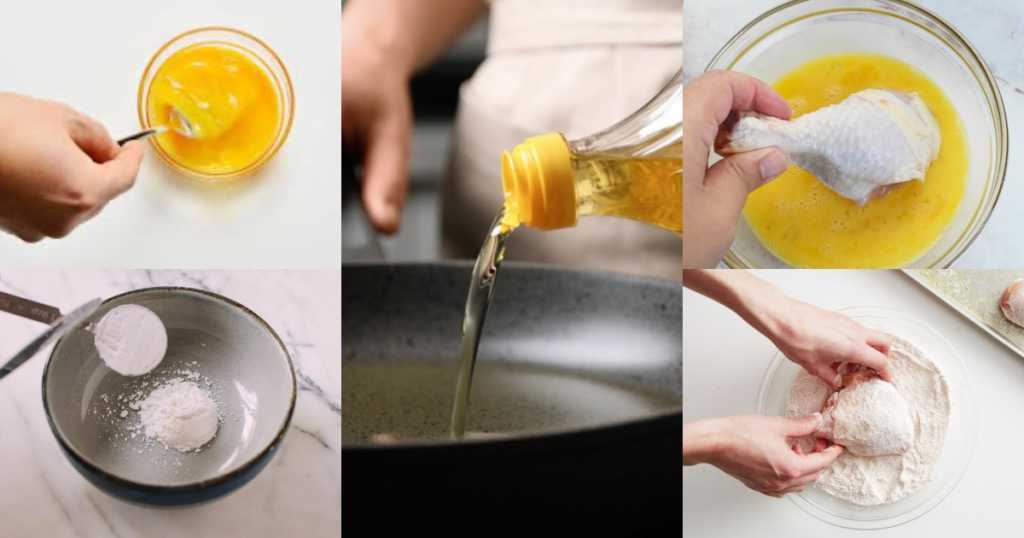 ကြက်ဥတွေကို ဆားနဲ့ငရုတ်ကောင်းထည့်ပြီး မွှေထားပေးပါ။ ဂျုံမှုန့်နဲ့ ပြောင်းဖူးမှုန့်များကို ရောမွှေထားပေးပါ။မီးဖိုပေါ်မှာ အိုးတင်ပြီး ဆီပူအောင်တည်ထားပေးပါ။ တုံးထားတဲ့ကြက်သားတုံးကို ကြက်ဥထဲနှစ်လိုက်ပါ။ ပြီးရင် ပြောင်းဖူးနဲ့ဂျုံမှုန့်ရောထားတဲ့အထဲမှာလှိမ့်ပြီး ထည့်ကြော်လိုက်ပါ။ ကြက်သားတုံးအားလုံးကိုလုပ်ပေးပါ။