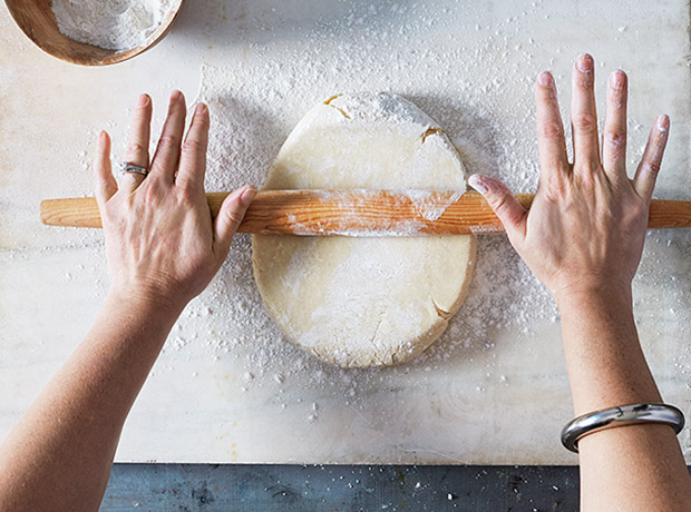 ပြီးရင် မုန့်သားကို ပါးပါးလေးနဲ့ လှအောင် လိပ်တံနဲ့ လှိမ့်ပေးပါ။ လိုချင်တဲ့ ပုံသဏ္ဍာန်ဖြစ်အောင် လှီးပါ။ အားလုံးကို ကွတ်ကီးစာရွက်ပေါ်မှာ တင်ပါ။ ကျန်တဲ့ စတော်ဘယ်ရီနဲ့ထောပတ်ကို အရည်ကျို ပြီး crackers ပေါ်မှာ ပွတ်ပေးပါ။